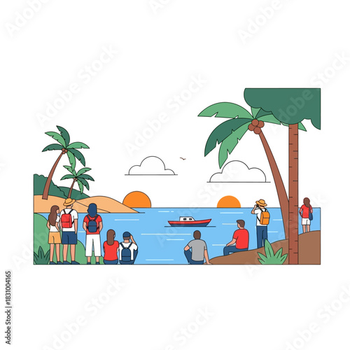 Векторная иллюстрация студентов, имеющих обеденный перерыв. Элемент дизайна концепции ужина в плоском стиле.