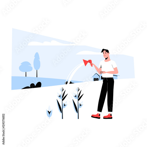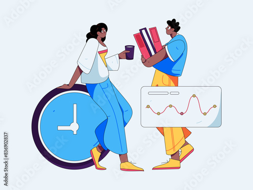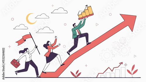Люди с ограниченными возможностями, покоряющие горную вершину, векторная плоская иллюстрация. Концепция "Путь к успеху". Счастливые персонажи мужского и женского пола с ограниченными возможностями преодолевают трудности и добиваются успеха в жизни.