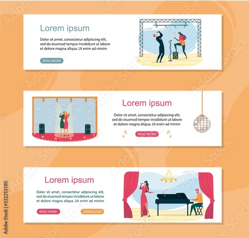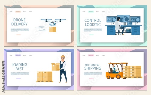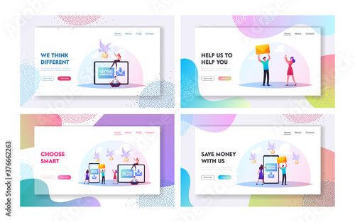 Набор шаблонов веб-баннеров для людей с ограниченными возможностями. Векторная плоская иллюстрация молодого мужчины и женщины с ограниченными возможностями, работающих, гуляющих и занимающихся спортом, используя протез, инвалидную коляску, слепую женщину с собакой-поводырем.