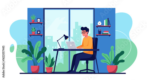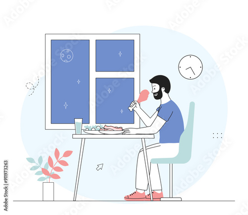 Векторная иллюстрация группы студентов, сидящих за столом и разговаривающих друг с другом. Молодые люди общаются и пользуются гаджетами. Элемент дизайна концепции обсуждения в плоском стиле.