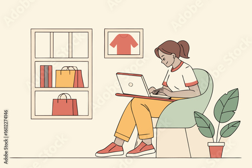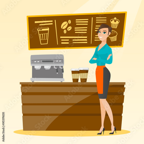 Потеря рабочих мест, концепция безработицы векторная плоская изолированная иллюстрация. Уволенная расстроенная и грустная женщина выходит из офисной комнаты, держа в руках коробку со своими личными вещами.