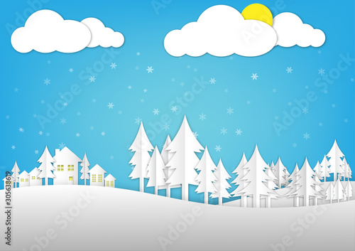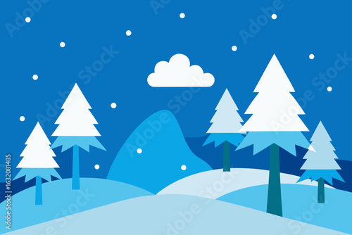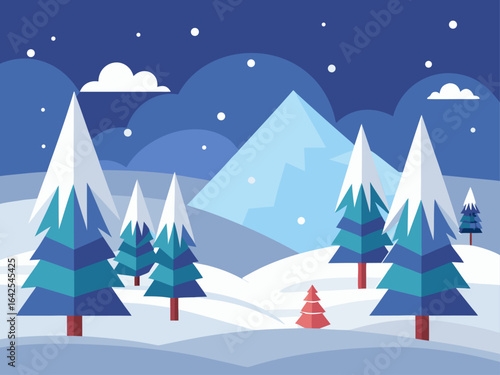 Набор макетов белого демонстрационного подиума, вырезанная из бумаги сцена зимнего ночного леса, векторная иллюстрация. Зимний фон для подарка, косметического средства, стимулирования продаж.