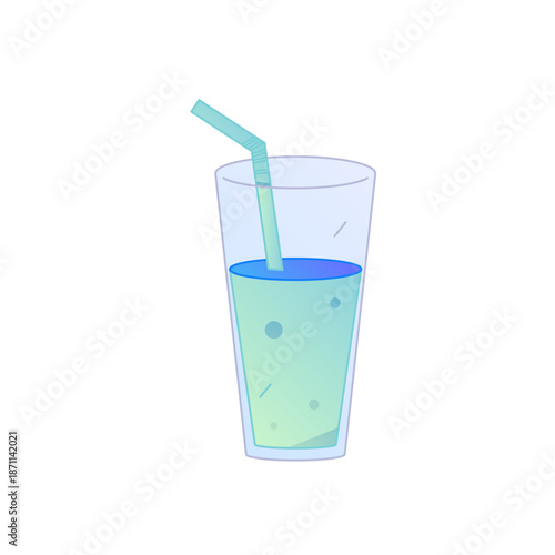 Вектор одноразовой пластиковой посуды. Многоразовый стакан для напитков со значком соломинки, выделенным на белом фоне