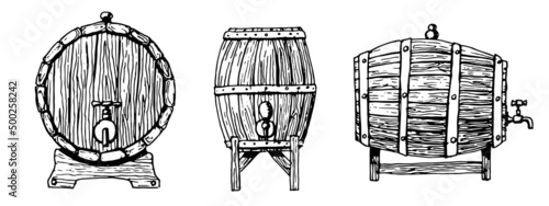 Набор для винокурни, который производит крепкий алкоголь, векторная иллюстрация, нарисованная от руки чернилами, изолированная на белом фоне.