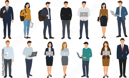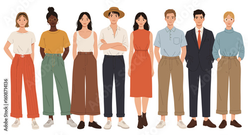 Разнообразная группа деловых людей концептуальная векторная иллюстрация. Бизнес-многонациональная и многорасовая команда. Офисный персонал мужского и женского пола различной расы в повседневной одежде. Сообщество разных людей.