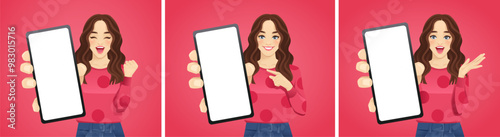 Разнообразные счастливые люди с пустыми дисплеями смартфонов, выделенные на белом фоне. Персонажи мужского и женского пола, демонстрирующие векторные иллюстрации макетов пустых экранов мобильных телефонов