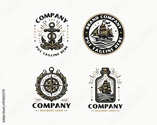 Школа дайвинга, магазин, клуб винтажный логотип, значок, набор эмблем, векторная иллюстрация. Снаряжение для подводного плавания, подводной охоты, подводного плавания и охоты. Водные виды спорта и досуга.