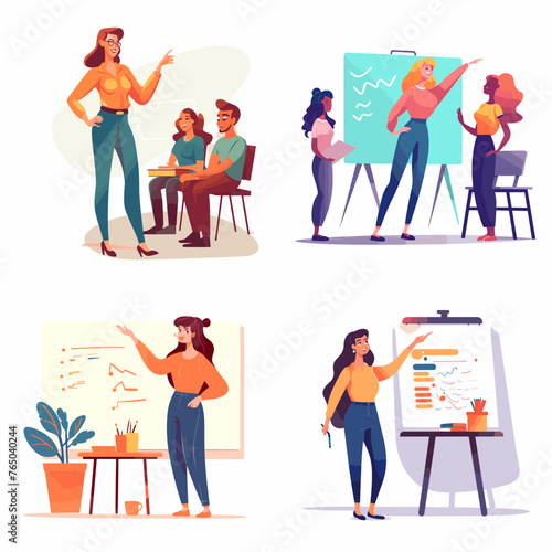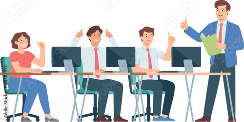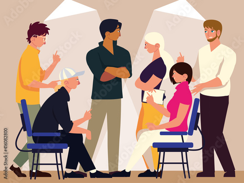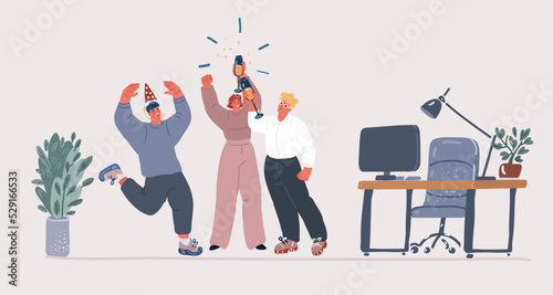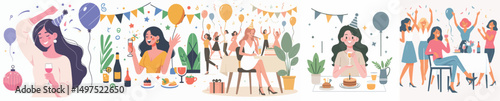 Векторный фон клуба Dj prom party с изображением танцующих счастливых людей. Мужчина-диск-жокей, играющий жокея, микширует мелодии диско-музыки для группы мужчин и женщин в клубе.