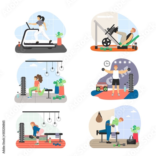 Доктор и пациент, мужчина, женский набор мультяшных персонажей, плоская векторная иллюстрация. Врачи осматривают, лечат больных людей, страдающих респираторными заболеваниями, вызванными вирусами. Медицина и здравоохранение