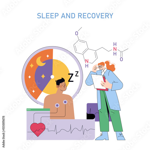 Женщина-врач-кардиолог осматривает человеческое сердце с помощью стетоскопа, плоская векторная иллюстрация. Кардиология, сердечные заболевания, медицина и здравоохранение.