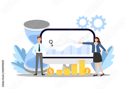 Персонажи доктора-стоматолога, отбеливающие человеческие зубы, плоская векторная иллюстрация. Стоматология, гигиена полости рта, профессиональная процедура отбеливания зубов.