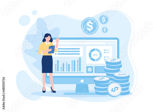 Врач делает ультразвуковое исследование брюшной полости пациентке, лежащей на медицинской кровати, плоская векторная изометрическая иллюстрация. Ультразвуковая диагностика, медицинское оборудование.
