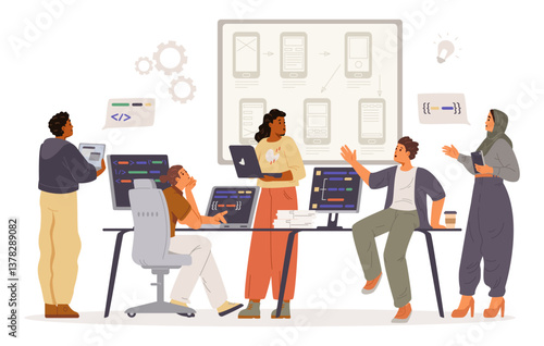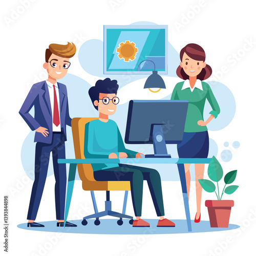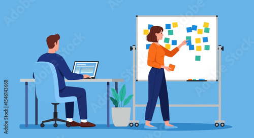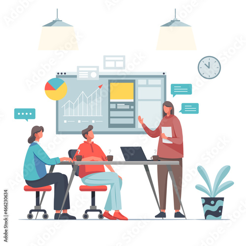 Практикующий врач, врач-мужчина, дающий медицинский рецепт пациентке, сидящей за столом, плоская векторная иллюстрация. Прием к врачу, консультация, лечение. Медицина и здравоохранение.