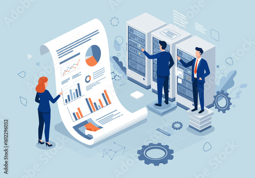 Доктор остеопат, хиропрактик, персонажи мужского и женского пола, изучающие боль в спине, исследующие кости позвоночника, плоская векторная изометрическая иллюстрация. Остеопатия, хиропрактика.