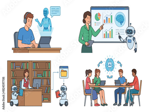 Набор сцен ветеринарной клиники, плоская векторная иллюстрация. Врач-ветеринар делает собаке укол, осматривает кошку. Ветеринарные услуги. Уход за домашними животными.