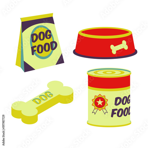 Набор макетов упаковки корма для собак, векторная реалистичная иллюстрация, изолированная на белом фоне. Поднимите пакет из фольги и металлическую банку для упаковки корма для домашних животных.