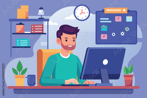 Домашний робот личной помощи приносит кофе своему владельцу дома. Векторная иллюстрация концепции технологии робототехники.