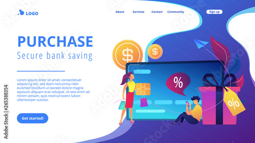 Пожертвуйте онлайн векторный шаблон веб-сайта, дизайн веб-страницы и целевой страницы для разработки веб-сайтов и мобильных сайтов. Группа доноров кладет деньги в ящик для пожертвований смартфонов. Концепция сбора средств на благотворительность.
