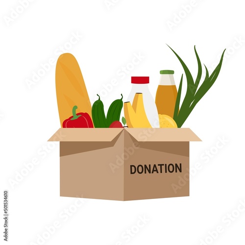 Коробка для пожертвований с векторным значком продуктов, изолированным на белом фоне