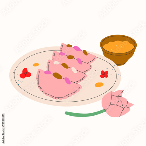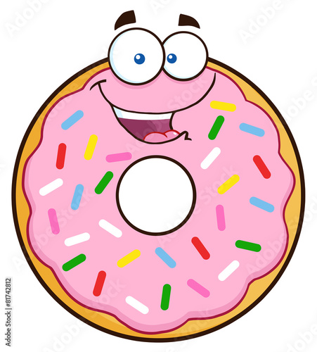 Вектор счастливой милой еды с персонажем из мультфильма "Пончик". Забавный пончик с розовой сахарной глазурью, иллюстрация талисмана. Комическое лицо кавайного сладкого десерта, изолированное на белом фоне