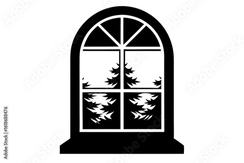 Дверь в летнем вырезанном из бумаги векторном плакате для рукоделия. Открытый дверной проем с видом на тропический морской пляж. Концепция летнего времени. Иллюстрация к путешествиям и отпуску