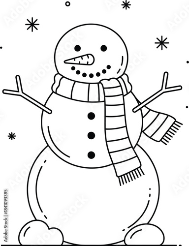Вектор с двойной экспозицией, вырезанный из слоистой бумаги силуэт снеговика с пейзажем зимнего ночного города внутри. Зимняя модная композиция для поздравительной открытки, плаката, баннера, страницы сайта и т.д.