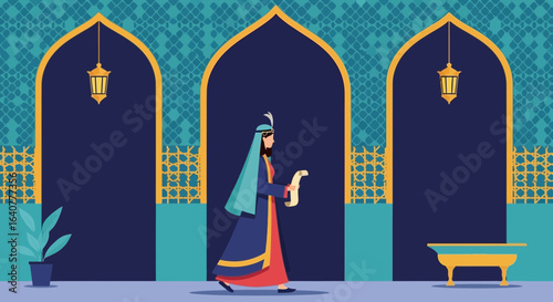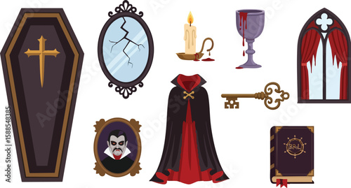 Векторная иллюстрация эпизода из фильма ужасов "Дракула" или театрального представления, основанного на романе Брэма Стокера. Элемент дизайна в плоском стиле.
