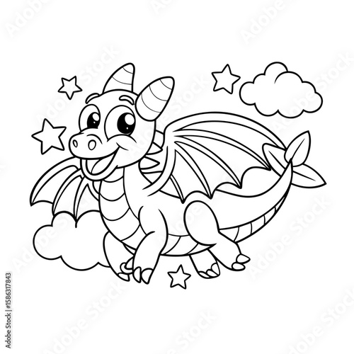 Вектор с изображением дракона. Иллюстрация симпатичного персонажа. Значок динозавра. Сказочный монстр, летающий и извергающий огонь, выделенный на белом фоне