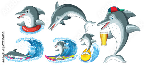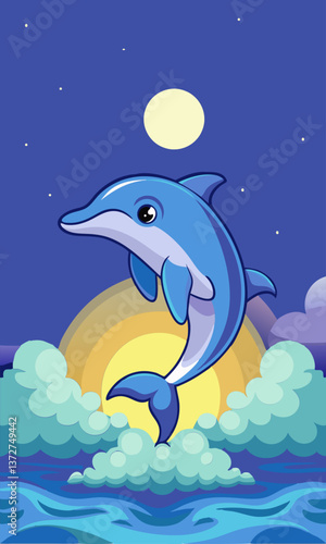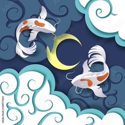 Симпатичная пара мечтающих сомов, векторная иллюстрация в современном стиле бумажного искусства. Красивая фантазийная композиция для открытки и т.д.