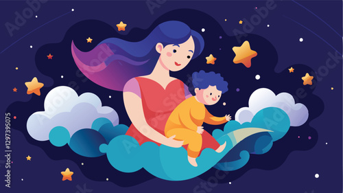 Красивая девушка с длинными волнистыми волосами, мечтающая поймать звезду, векторная иллюстрация в современном стиле бумажного искусства. Концепция успеха, карьеры, счастья, богатства.