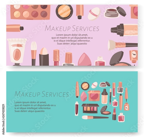 Дизайн целевой страницы гардеробной, набор шаблонов баннеров веб-сайта, плоская векторная иллюстрация. Девушка-актриса, фотомодель, певица, знаменитость делает макияж и прическу. Гримерная, индустрия моды.