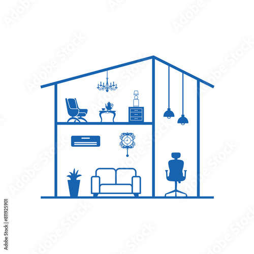 Вектор комнаты с туалетным столиком. Дизайн интерьера женской мебели с полками. Флакон духов, косметики и крема, косметические принадлежности для ухода за телом девушки на полке, изолированной на белом фоне