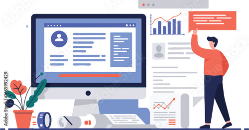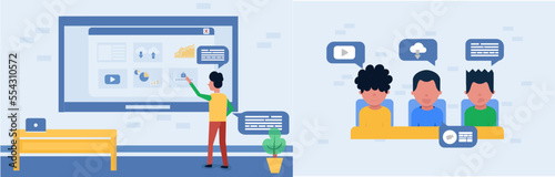 Инструктор автошколы, объясняющий значение дорожного знака на стенде векторная иконка, выделенная на белом фоне