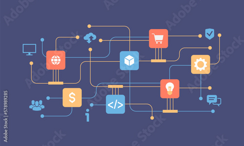 Векторная иллюстрация концепции доставки дронов с диаграммами для компании доставки. Современная экспресс-доставка пиццы, обуви и одежды беспилотными летательными аппаратами с плоскими символами, пиктограммами.