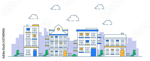 Концепция доставки дронов векторным горизонтальным баннером. Квадрокоптеры, доставляющие посылки клиентам. Современный элемент дизайна в плоском линейном стиле для рекламы бизнеса по доставке дронов.