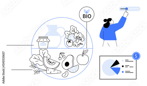 Оператор дрона с пультом дистанционного управления, квадрокоптер на подиуме, плоская векторная изометрическая иллюстрация. Беспилотный летательный аппарат. Технология беспилотных летательных аппаратов.
