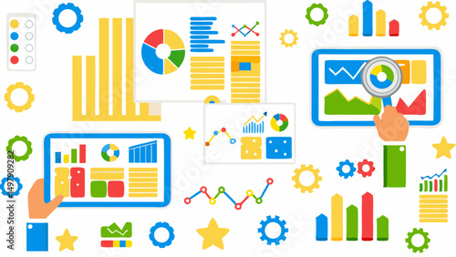 Векторная иллюстрация концепции инфографики технологии беспилотных летательных аппаратов. Квадрокоптеры, доставляющие посылки, продукты питания и другие товары, воздушные дроны с камерой, снимающие фото и видео. Беспилотный летательный аппарат обслуживает плоские символы. значки.