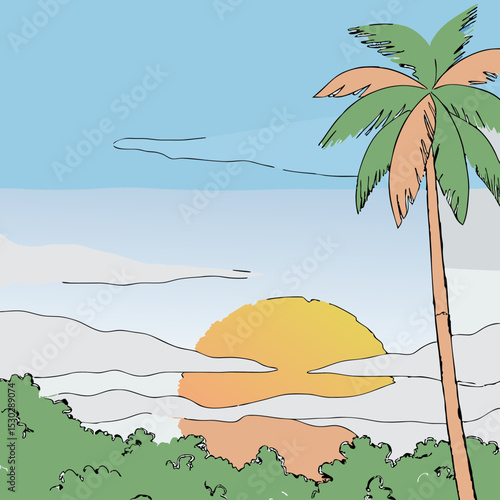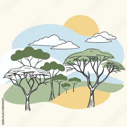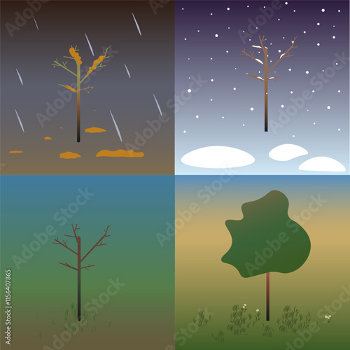 Вектор засухи. Мультяшная иллюстрация засушливой земли и деревьев в пустыне. Жаркая погода, эрозия почвы, изображение сцены с палящим солнцем. Стихийное бедствие, выделенное на белом фоне