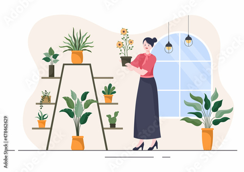 Векторная иллюстрация портнихи или дизайнера одежды, стоящего рядом с манекеном, одетым в новое розовое вечернее платье. Ателье, ателье по пошиву одежды, модный салон концептуальный элемент дизайна в плоском стиле.
