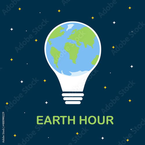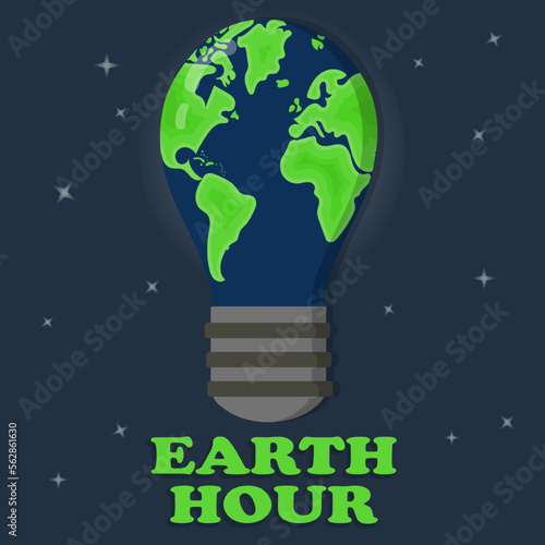Векторный шаблон веб-сайта "Час Земли", дизайн веб-страницы и целевой страницы для разработки веб-сайтов и мобильных сайтов. Ежегодная экологическая кампания "Час Земли" по энергосбережению во всем мире.