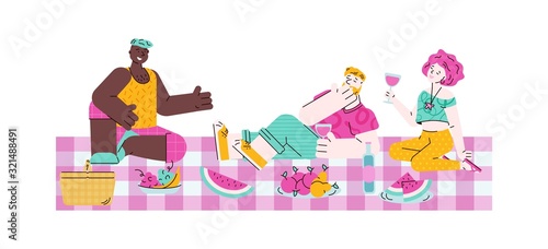 Пасхальная корзина с милым кроликом и крашеными яйцами, место для текста, мужчина и женщина с пасхальным куличом и яйцом, векторная плоская иллюстрация. Композиция для весеннего праздника для плаката, баннера и т.д.