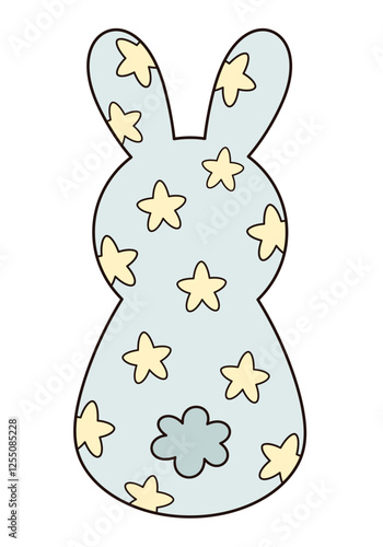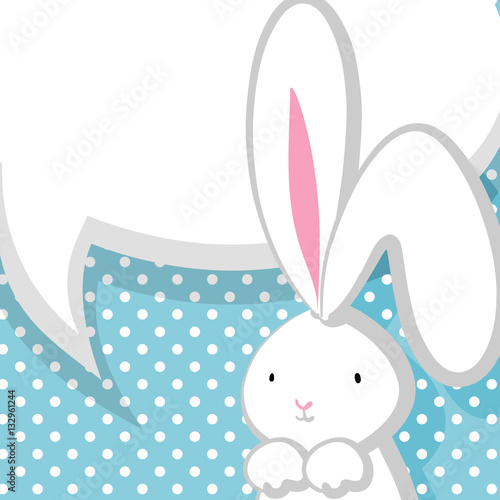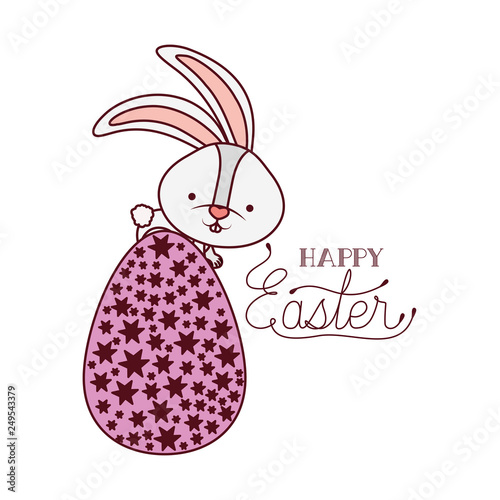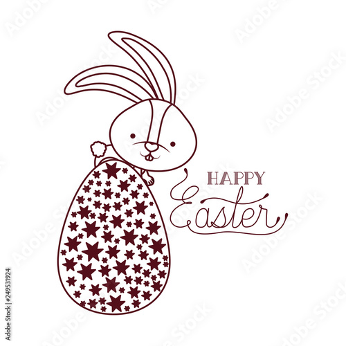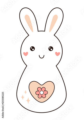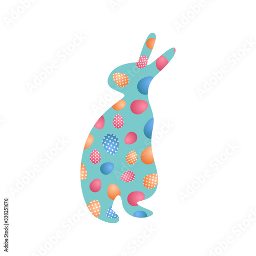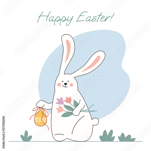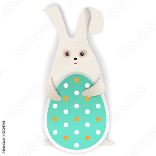 Пасхальный кролик держит яйцо с рисунком в лапке, вырезанном из бумаги в милом векторе. Забавный значок весеннего праздничного кролика, выделенный на белом фоне