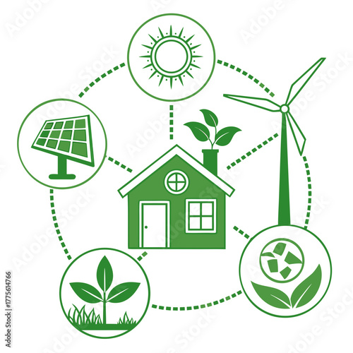 Абстрактный дизайн векторного логотипа Eco smart home в стиле paper cut art. Иллюстрация продвижения возобновляемых источников энергии для частных многоквартирных домов. Окружающая среда и экологические технологии