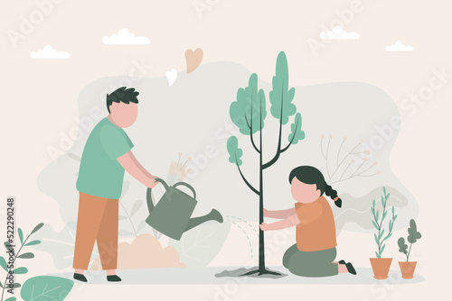 Экология, дизайн целевой страницы, набор шаблонов баннеров сайта, плоская векторная иллюстрация. Счастливые люди, волонтеры собирают мусор и сажают деревья в городском парке. Охрана природы, волонтерство.