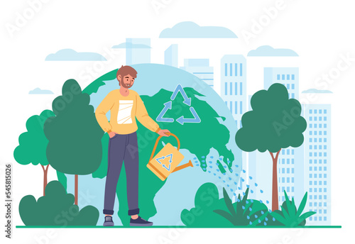 Экология, дизайн целевой страницы, набор шаблонов баннеров сайта, плоская векторная иллюстрация. Люди собирают, сортируют мусор для переработки, едят свежие органические фрукты. Экологичный образ жизни.