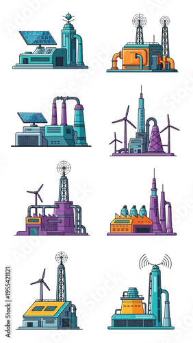 Источники загрязнения окружающей среды и активисты-экологи с плакатами, баннерами, векторной иллюстрацией, изолированной на белом фоне. Загрязнение воздуха, воды отходами промышленного производства и пластиковым мусором.