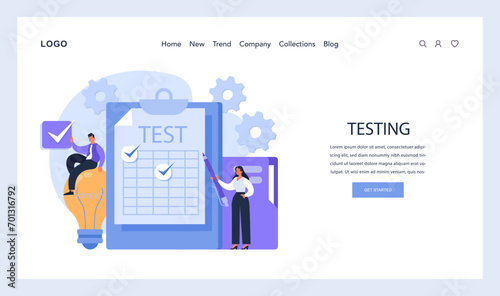 Экологический векторный шаблон веб-сайта, дизайн веб-страницы и целевой страницы для разработки веб-сайтов и мобильных сайтов. Крошечные люди собирают, сортируют и выбрасывают мусор в большие разноцветные мусорные баки.