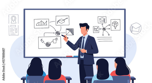 Векторная иллюстрация концепции образования, дизайн в плоском линейном стиле. Успешный выпускник с дипломом - это успешный бизнесмен, зарабатывающий деньги.