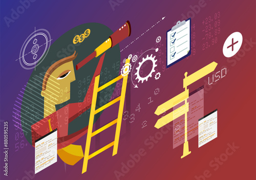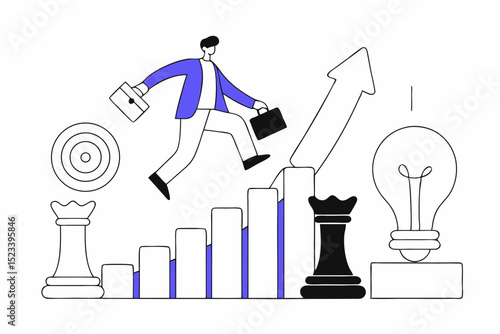 Образование, окончание учебы, резюме, офисный сотрудник, деловые достижения, вознаграждение и финансовый успех, плоская векторная иллюстрация. Успех в бизнесе и карьерный рост.