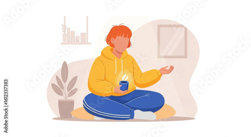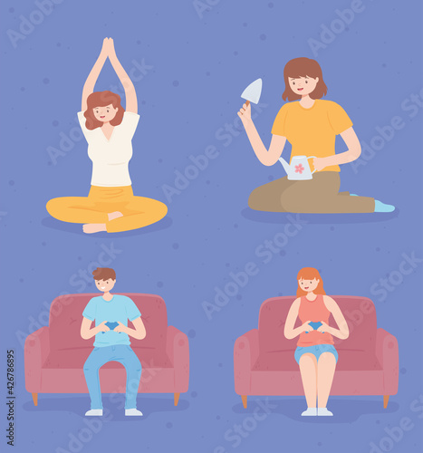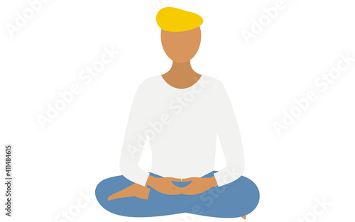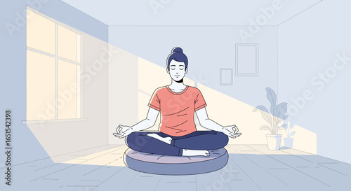 Пожилая пара медитирует и занимается йогой дома, плоская векторная иллюстрация. Спорт, фитнес-упражнения для пожилых людей. Активный здоровый образ жизни, домашний досуг.